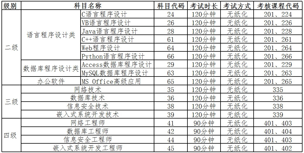 开设的考试科目:
