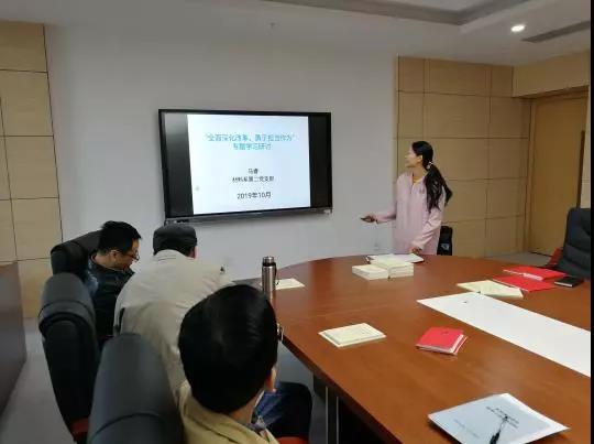 首先,支部全体党员重温了入党誓词,自觉交纳了2019年10月的党费,不折不扣地完成了主题党日的规定动作。接着,支部书记马睿就“全面深化改革,勇于担当作为”为主题给全体支部党员讲党课。