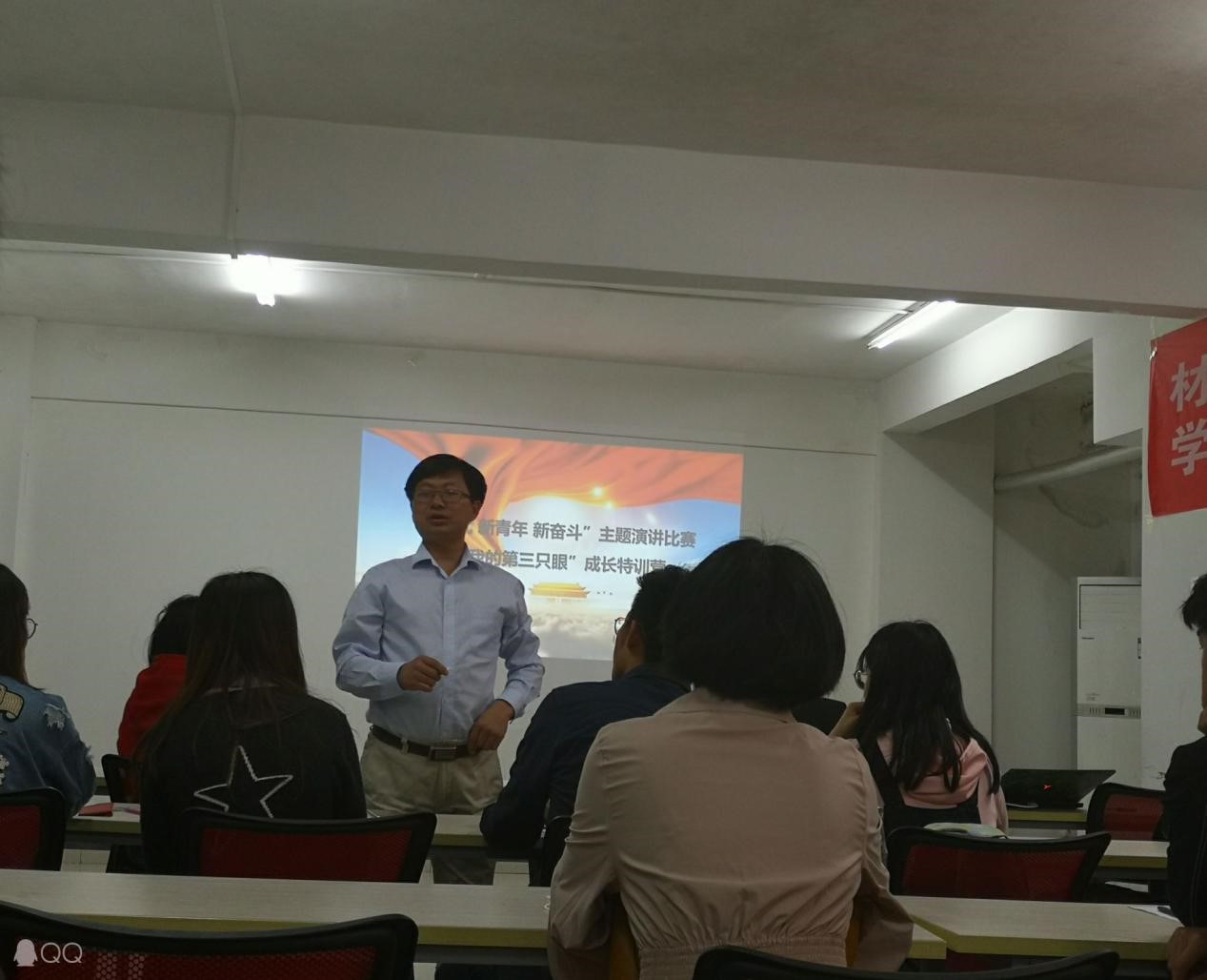 “学习之路”主题教育活动讲述个人学习感想的等等。在每一个人演讲结束后,余江涛老师为每个同学提出了宝贵意见。