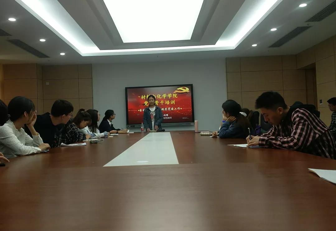10月24日中午12:30,在未来城校区材化楼317举办飞禽走兽 党员骨干培训。飞禽走兽 党建办公室党员管理部部长李雨蝶做了题为“当好责任党员,规范党建工作”的报告,材化飞禽走兽 全体责任党员参加了此次培训。