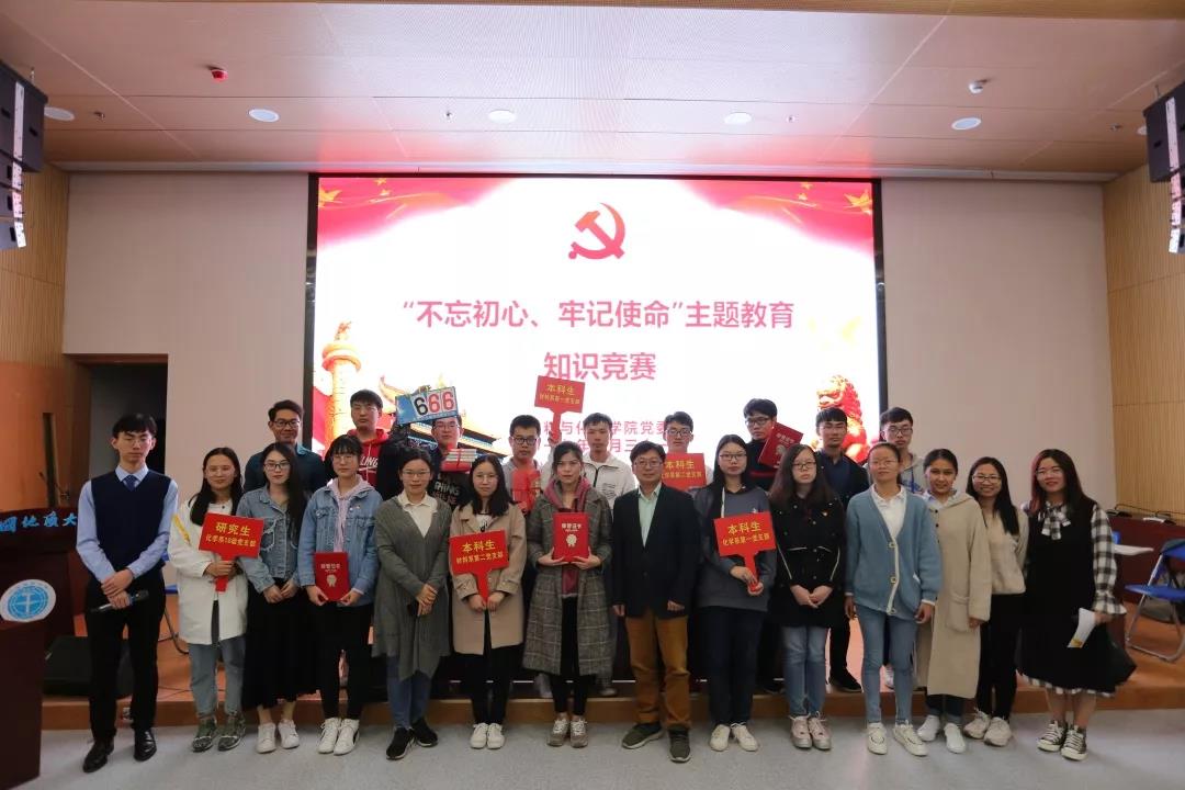 党委副书记余江涛,本科党支部书记吴迪、陈文婷、唐伟、王博优老师和学生党支部书记、学生党员、入党积极分子。本次知识竞赛以习近平新时代中国特色社会主义思想、《中国共产党章程》以及“不忘初心、牢记使命”应知应会一百题等为考察内容,五支代表队须通过必答题、抢答题和风险题三类题型的考察,依照总分排名决出最后的奖项。