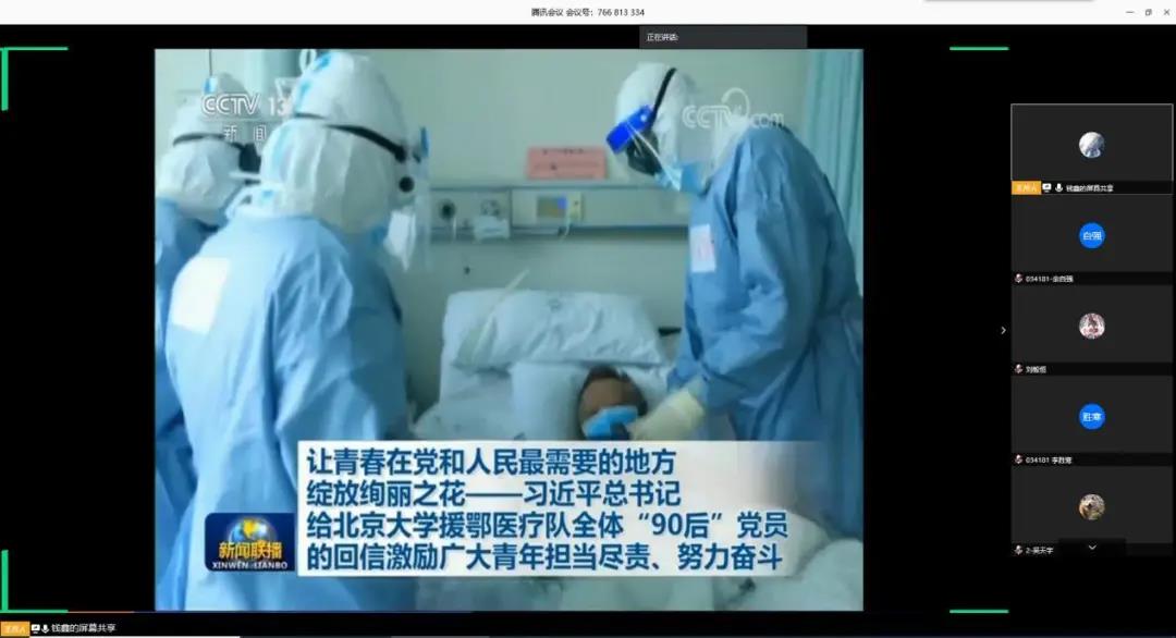 各支部通过腾讯会议等平台学习了总书记的回信,并围绕“对国家抗击疫情采取措施的认识,当代青年的价值观和责任担当”展开了交流讨论。
