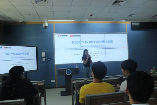 程寒松教授团队科研成果成功转化的实例讲授知识产权的重要性。刘文婷指出,用知识产权来保护科研成果才是真正受到法律保护的途径。她通过知识产权保护的盲区和容易存在的问题提示学生们切勿随意将自己的科研成果通过公众号,微博等媒介传播,告诫学生们重视知识产权的价值。同时,如何将自己的科研成果发挥出最大的价值,刘文婷向学生们详细地介绍了科研成果转化的途径。