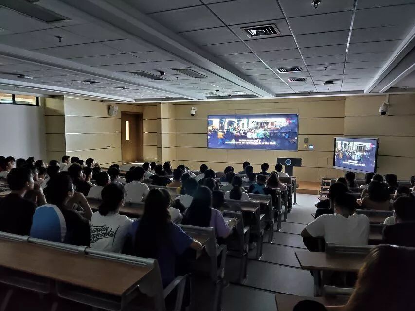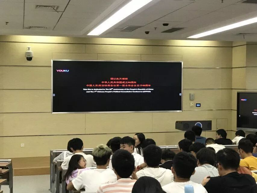 观影过程中,同学们安静认真地欣赏着这部影片,领悟影片所传达的爱国主义思想和当初中华人民共和国成立过程的艰难,透过影片同学们感受到当时毛主席所领导的老一辈革命家心中澎湃的爱国热情和坚持抗战到底的决心。