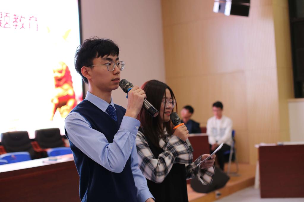 余江涛做了讲话。他对创新形式开展深入推动主题教育表示高度肯定,对党员带头学习,广大同学们踊跃参与,表示高度赞扬。他希望广大党员同学坚持文理结合,广大吸取人文知识、学习中国传统文化知识,打好科学文化基础;坚持红专并进,既掌握专业技能,练就过硬本领,同时又注意思想政治理论的学习与提高;坚持学用结合,把习近平新时代中国特色社会主义思想的学习成果、体会收获运用到学习工作中,加强思想武装,推动实际工作