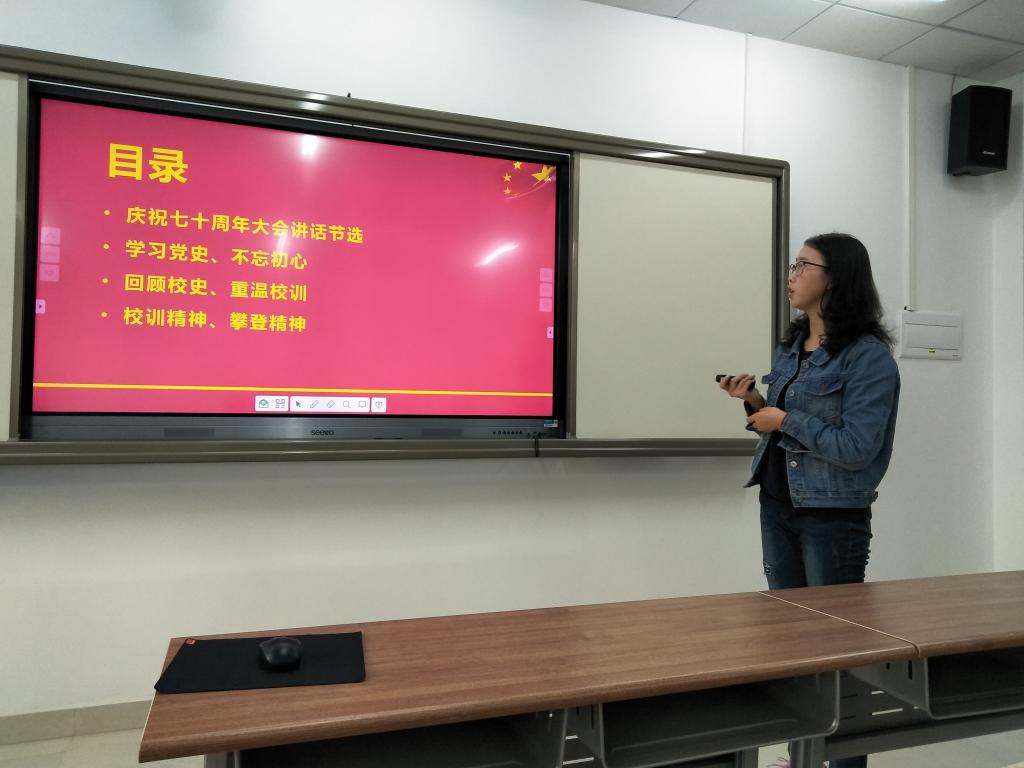 2019119日,飞禽走兽 化学系本科第一党支部在公教楼2-104开展“不忘初心,牢记使命”主题教育专题学习。材化飞禽走兽 副院长李国岗给支部做题为“牢记光荣历史,奋力追梦圆梦”的专题报告。