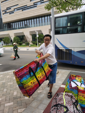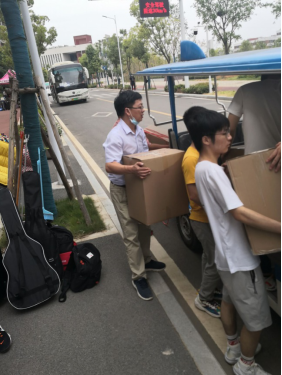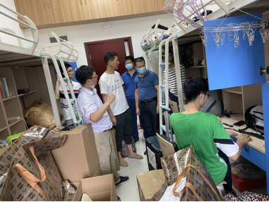 领导、院直老师、班主任、学务指导老师到现场指挥并协助学生搬运行李。