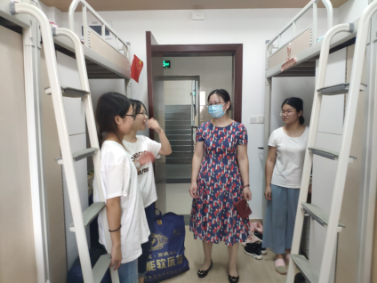 领导和院办老师随即走进学生宿舍,看望慰问搬入新宿舍的同学们。老师们详细询问了目前学习和生活中遇到的困难,及时了解同学们的需求,同时提醒同学们疫情常态化防控不松懈,提高安全防范意识。入驻未来城后,2019级的同学们纷纷表示,和老校区相比,新校区的宿舍条件大大改善,四人间里空调、冷热水、储物间一应俱全,同学们对接下来的学习生活充满了期待。