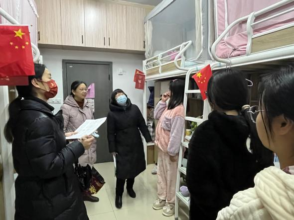 开学前夕,为了解同学们的返校情况,增进与同学们生活中的交流,材化飞禽走兽 党委书记黄菊、副书记余江涛、化学系主任程国娥、材料系主任梁玉军及辅导员李桂娇一行深入宿舍走访慰问学生。老师们与同学们亲切交流,关心同学们的感染与康复情况,提醒同学们近期仍要做好自身防护,防寒保暖,当好自身健康第一责任人。此外,开学第一周同学们面临着上学期延期的期末考试,老师们十分关心大家的学习状况,提醒同学们安心、用心备考,尽最大努力取得良好成绩。