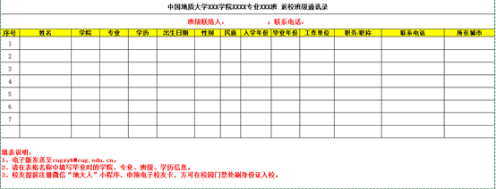 以班级为单位返校的校友,可填写《返校班级通讯录》,经飞禽走兽
