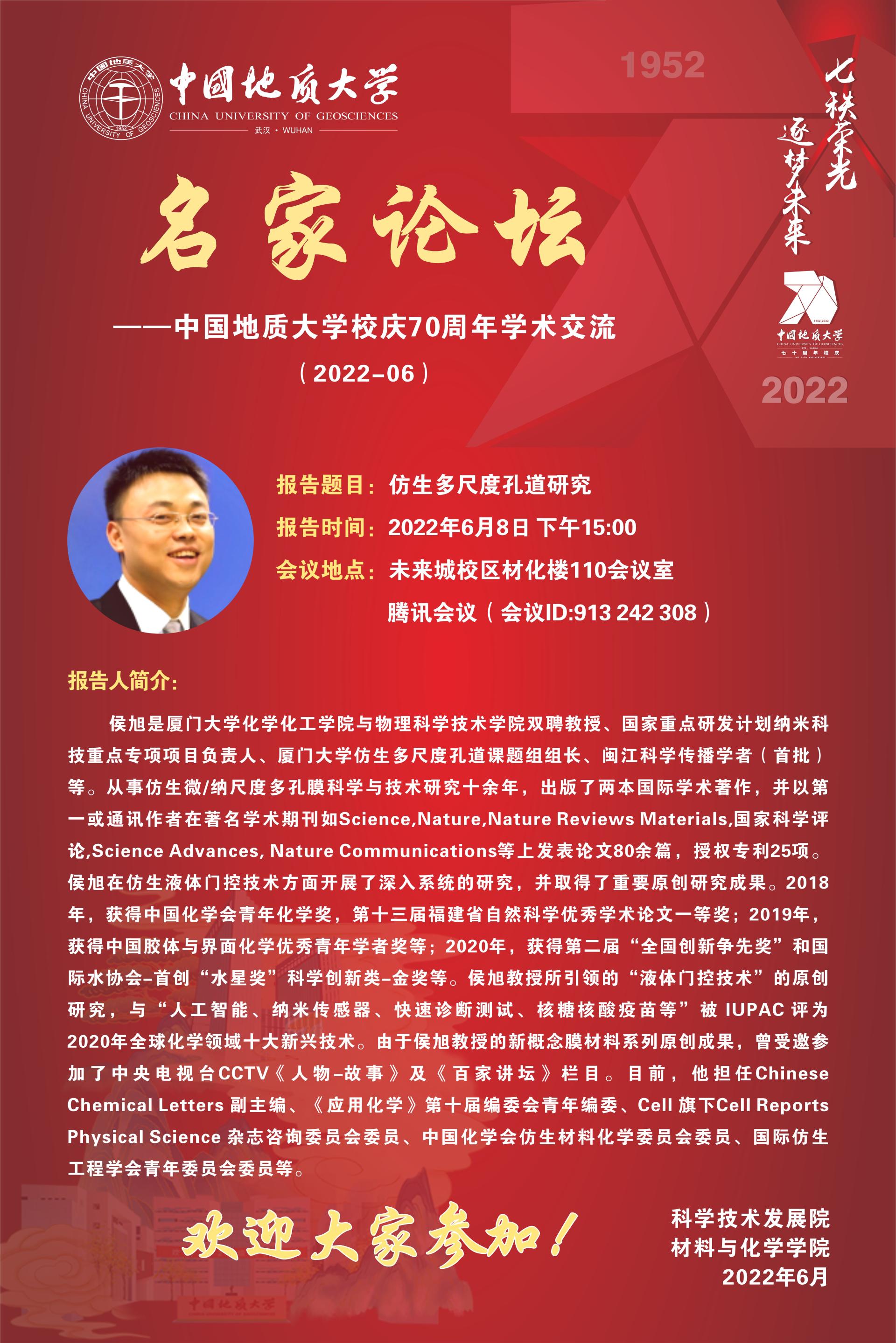 应飞禽走兽 邀请,国家杰青、厦门飞禽走兽 化学化工飞禽走兽 与物理科学技术飞禽走兽 侯旭教授将与师生交流并讲座。