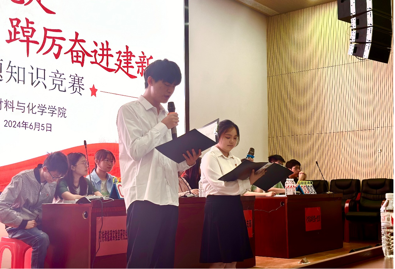 党建办要对此次竞赛活动进行认真总结,进一步完善组织形式与活动内容,进一步擦亮“一院一品”党建工作品牌。为进一步提升党史学习与党纪学习教育成效,他要求各党支部结合主题党日等建立常态化学习机制,在学习中不断增强党性修养、提升思想境界、坚定理想信念。最后,他寄语青年党员和入党积极分子,希望大家不忘初心、牢记使命,自觉将自身发展融入祖国建设发展中,瞄准国家战略发展需求,紧紧把握新能源新材料领域创新发展大势,带头奋发进取、担当作为,为实现中华民族伟大复兴贡献智慧与力量。