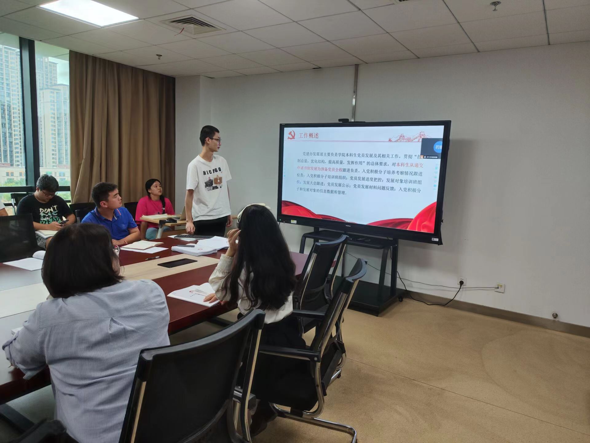 十三次党代会精神对深化基层党组织建设提出了明确要求,各党支部要坚持问题导向,结合各自支部实际,找准发展定位,总结提炼特色,运用系统思维完善工作体系与长效机制,运用创新思维在实践探索中推动形成“一支一特”工作格局。他要求党建工作办公室发挥好统筹协调、指导督促与服务保障等作用,各支部要通过积极开展联学共建加强对外交流,齐心协力进一步夯实基层党建工作基础,提升党建引领学生成长发展的工作成效。