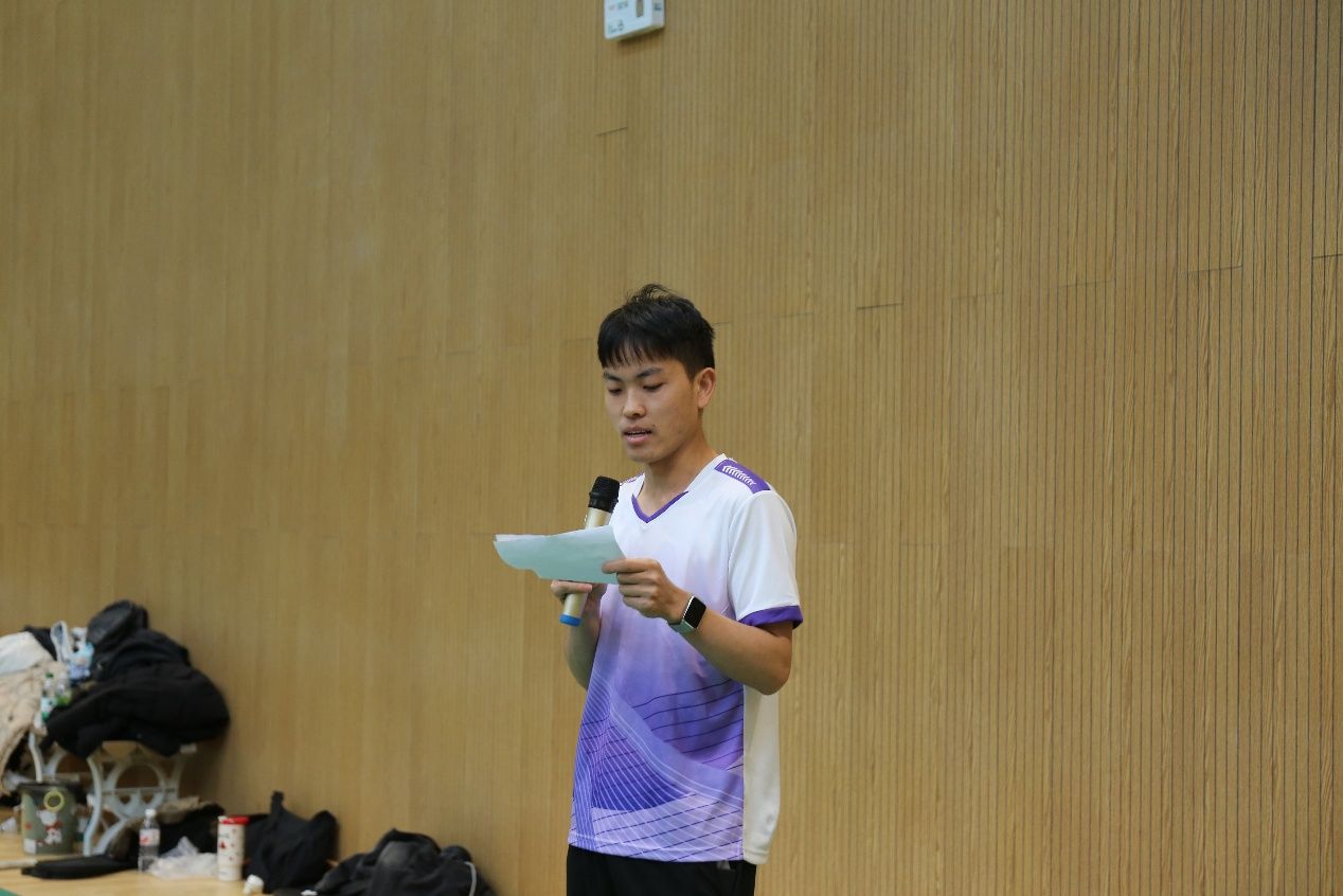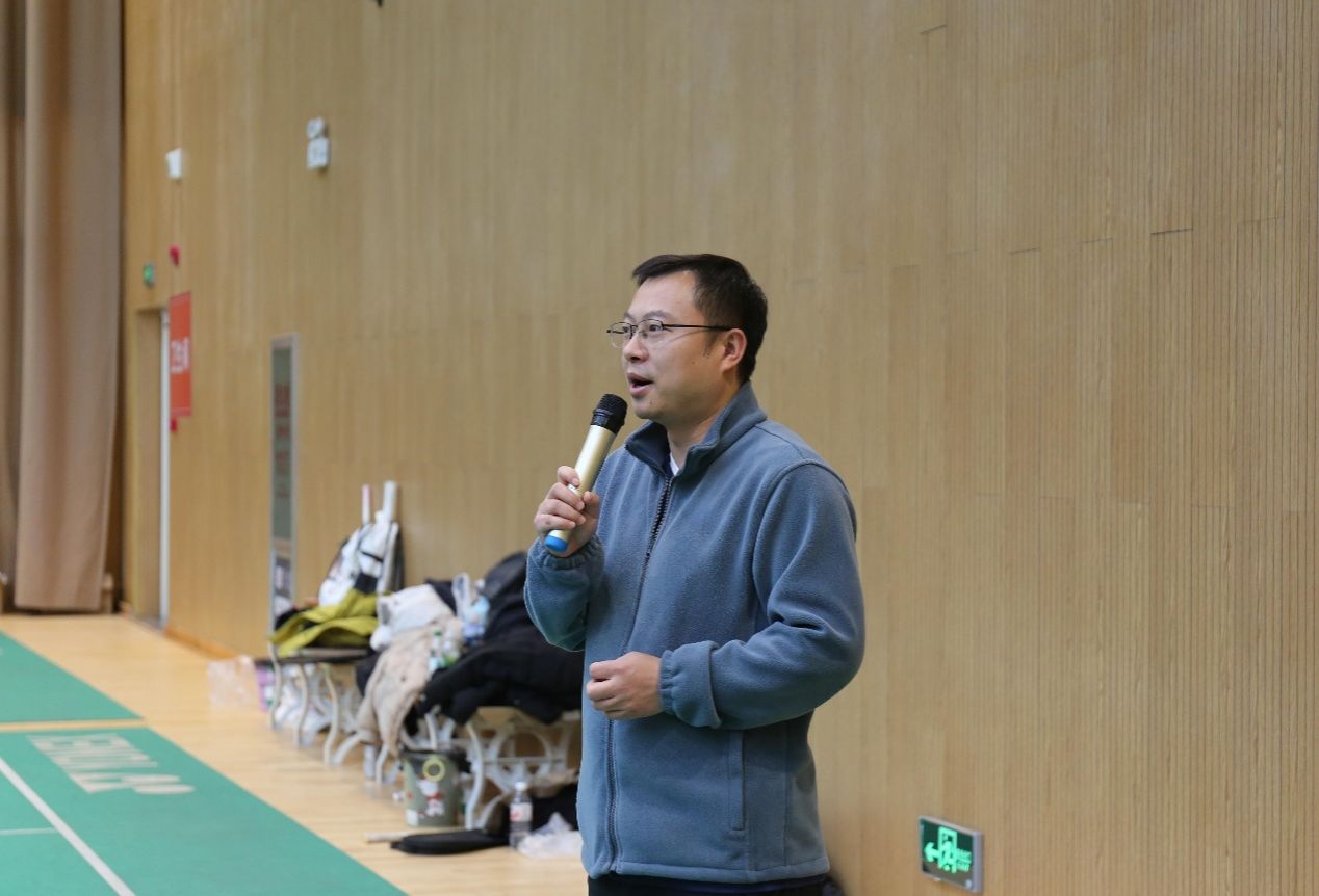 党委书记梁本哲致辞。他表示,本次活动是党建与学术活动相结合的一次尝试,希望通过羽毛球赛促进师生沟通,推动飞禽走兽