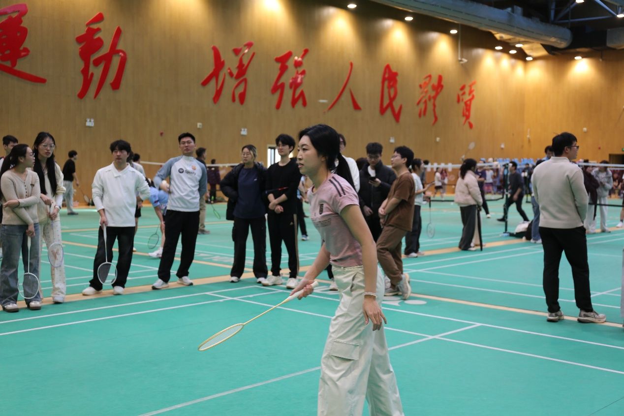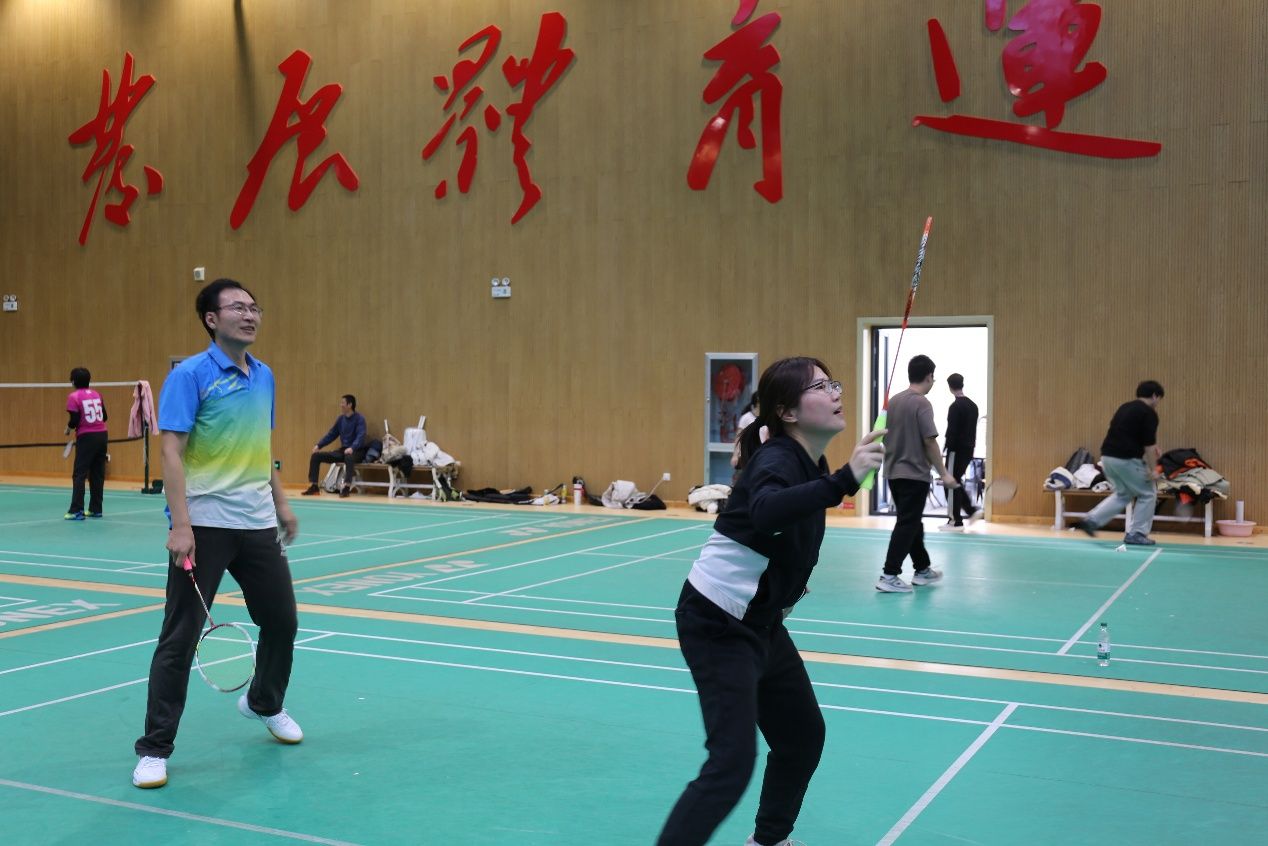 在未来城校区体育馆举办“党建引领·导学同行”羽毛球师生交流赛。本次活动共有18支研究生队伍参赛,师生参与人数近200人。比赛旨在通过体育活动加强师生交流,展现飞禽走兽