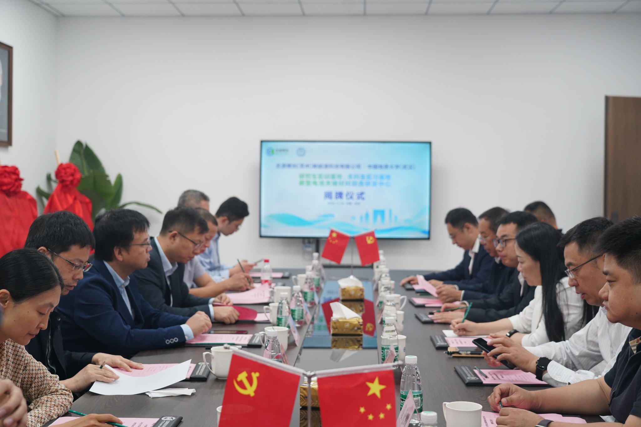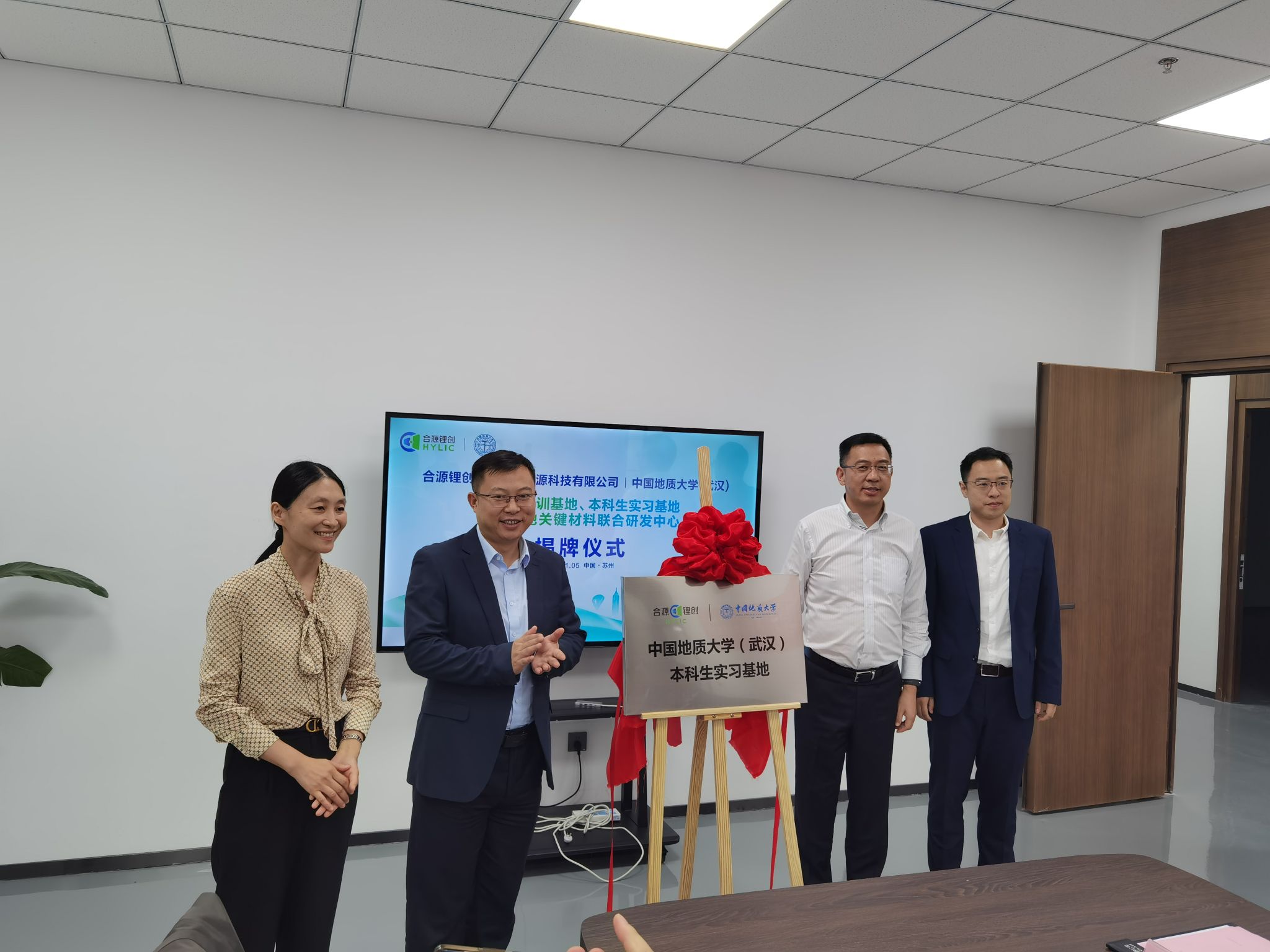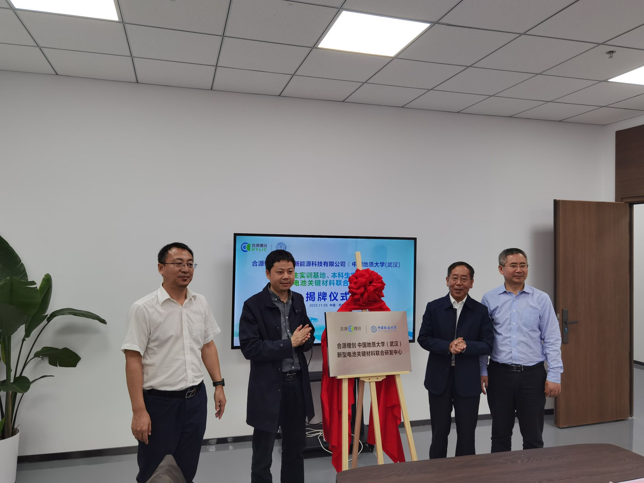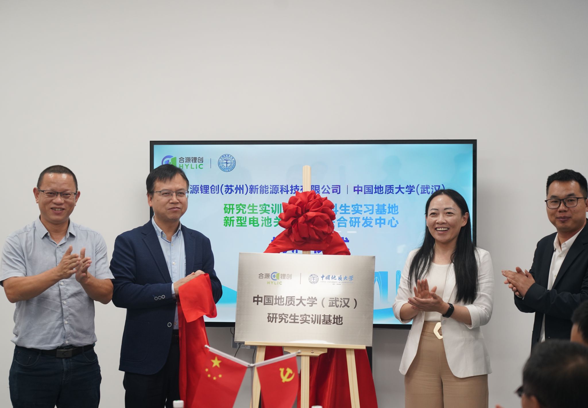 、企业、管委会三方代表共同为“新型电池材料联合研发中心”、“本科生实习基地”和“研究生实训基地”揭牌。