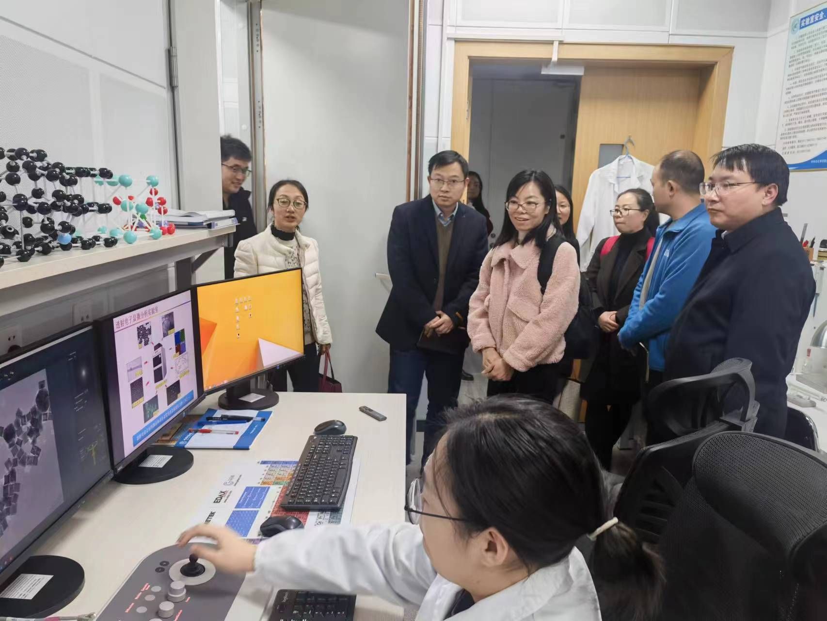 座谈会结束后,梁本哲书记陪同江凡书记一行到材化楼有关实验室进行参观考察。