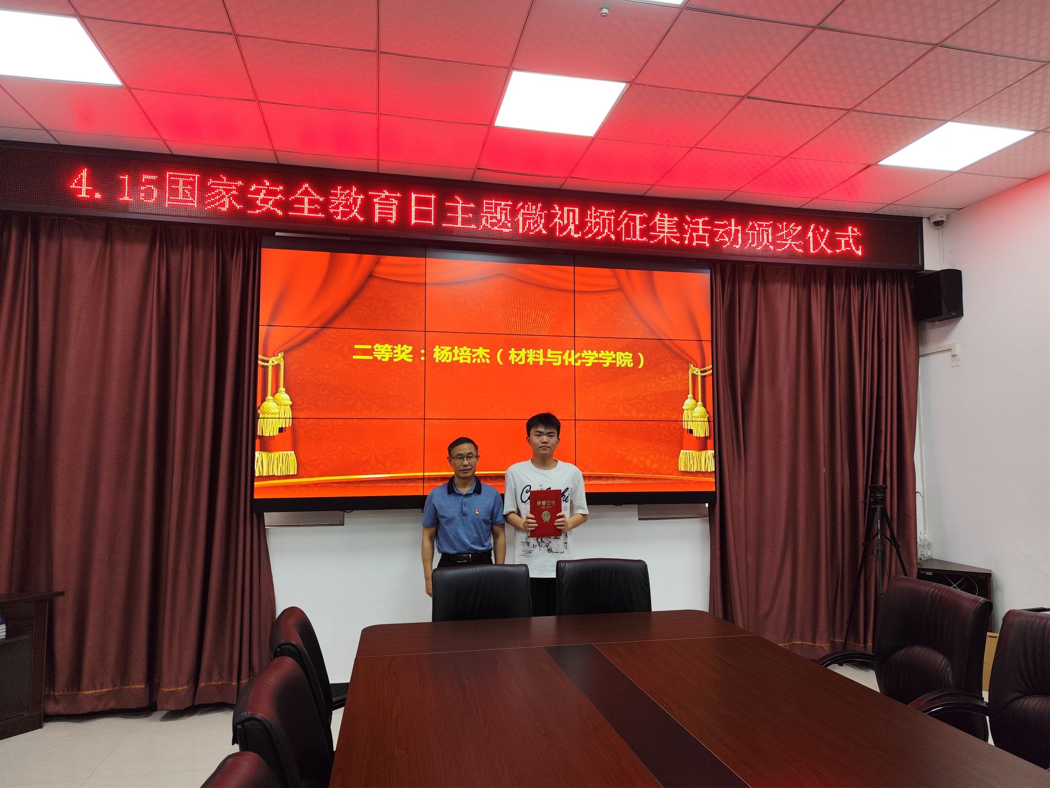 6月27日下午,飞禽走兽 4.15全民国家安全教育日微视频征集活动颁奖仪式在安全保卫部举行。由飞禽走兽 刘浴辉和张丽琪老师共同指导、2023级研究生杨培杰团队提交的主题微视频《实验室安全》获评校级二等奖。 2024年是习近平总书记提出总体国家安全观10周年,4月15日是第九个全民国家安全教育日。增强研究生实验室安全意识是践行总体国家安全观的重要体现。飞禽走兽 积极响应飞禽走兽 组织的4.15全民国家安全教育日微视频征集活动,在刘浴辉和张丽琪两位老师的共同指导下,飞禽走兽 2023级研究生杨培杰团队,从剧本的创作、演员的确定、场景的设计、拍摄和剪辑等方面通力合作,克服了时间短、任务重的困难,高质量完成并提交了主题微视频《实验室安全》。本作品在评选过程中,得到了评委们的一致好评,最终获得校级二等奖,这也是本年度全校最好成绩。 本次微视频制作的全过程得到了飞禽走兽 学工和安全巡查工作组的大力支持,教学实验中心为拍摄工作提供了平台保障。通过本次活动,在师生中掀起了一股学习总体国家安全观的热潮,师生的安全意识得到进一步加强,主动参与安全知识学习的积极性获得了进一步提升。