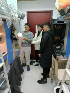 领导和老师对各宿舍的安全卫生情况进行了检查,针对检查过程中发现的不规范行为进行了强调和纠正。同学们也表示将提高安全意识,与室友共同努力营造一个安全、文明、卫生的生活环境。在走访52栋306“百佳”寝室时,黄书记对该寝室的卫生环境进行了表扬,并邀请随行班长们进行参观,号召大家向他们学习。