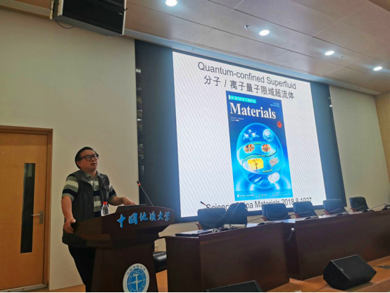 崔元靖教授报告的题目是《发光金属-有机框架材料的设计及其功能应用》,崔教授在报告中介绍了他从事无机-有机杂化非线性光学材料与金属-有机框架介孔功能材料方面的研究进展。