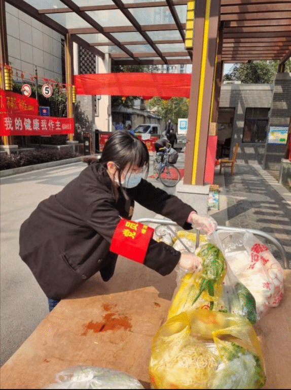 我们的工作是登记小区人员的出入情况,测量体温,帮助居民购买蔬菜包。这些工作看似简单,却需要注意颇多细节。卡点便是其中一大难点,我们要严格检查出入居民的通行证,把控大门,准确记录出入时间,不允许任何外来人员进入小区。上任不久我便遇到了麻烦事,一位阿姨想骑电车进入小区给亲戚送菜,菜多而重下来拿不方便。我按照规定拦下了她,她便有些生气,说自己没患病为什么不让进,送菜又不碍事。我一时语塞,这时一起值班的党员同志有理有据地向她耐心解释,阿姨这才让亲戚下来自己提菜。在购买蔬菜包时,我们要帮助买菜的居民排好队,空出足够的间距,避免扎堆。在居民认为蔬菜包搭配不合理时,我们也需要做好疏导工作。在人多忙不过来时,我们还要充当临时收银员、配送员。