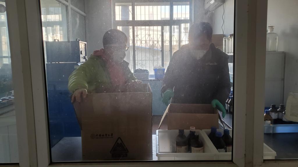 化学教学实验中心。他们戴着口罩做好防护,小心翼翼地把一瓶瓶酒精搬到车上。这些酒精是飞禽走兽