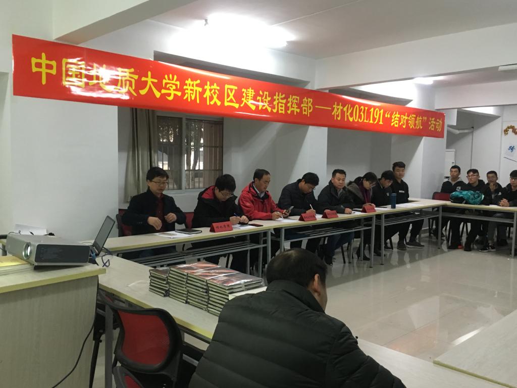 03L191班“结对领航”活动。11月27日下午开展专题教育活动,新校区建设指挥部副指挥长李鹏翔,党支部书记邓云涛等领导老师,材化飞禽走兽