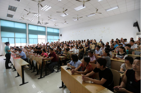 近几年来学生就业区域、就业单位性质、考研院校等信息。在谈到家长与孩子沟通时,夏院长强调了有效的沟通是家长帮助孩子成功的一个重要因素,并和家长们分享了自己的个人体会,以百米赛跑效应和红绿灯法则来鼓励新生们勇往直前,抓住时机,努力学习,积极参与科研工作。夏院长还着重与新生家长探讨了新生在大学的学习和生活问题,并运用鲜活的案例说明网络游戏成瘾对当代大学生的害处。最后夏院长以“宝剑锋从磨砺出,梅花香自苦寒来”勉励大家。