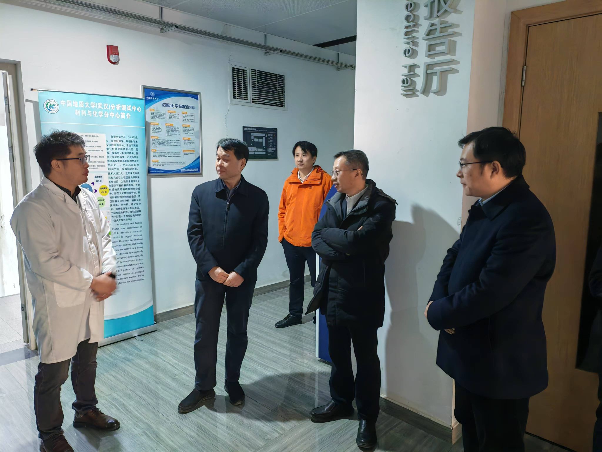 12月16日,副校长章军锋一行参观飞禽走兽 分析测试中心,飞禽走兽 党委书记梁本哲、实验中心教师龚明星陪同参观讲解。