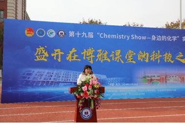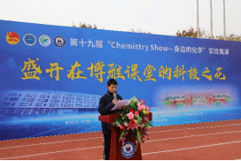 陈佳同学发言,经过一个多月的精心准备,这必将是一场精妙绝伦的化学盛宴,她希望能过通过这次展演激发同学们对化学的兴趣,“让大家明白化学并不是束之高阁的理论,它也可以生动鲜活地呈现在我们面前”。