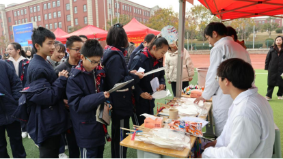 活动现场,1000余名中学生驻足在18个科普展演团队展位动手操作,切身体验,紧紧抓住这次和科技“零距离”交流的机会,认真聆听讲解,在互动中汲取科学知识的营养。807班李承泽同学说“活动很有趣,我们可以自己动手实践,看到自己做的小作品,感觉很有成就感,也感受到原来身边很多有趣的现象都与化学息息相关。
