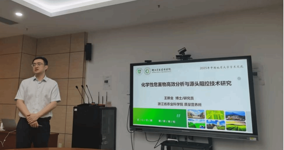 师生作了题为《化学性危害物高效检测与防控技术研究》的学术报告。他深入介绍了浙江农科院近年来的发展情况,重点阐述了农产品质量安全与营养研究所在检测技术研发与应用、手性农药安全性评价、化学阻控技术研究等前沿领域的最新研究成果。