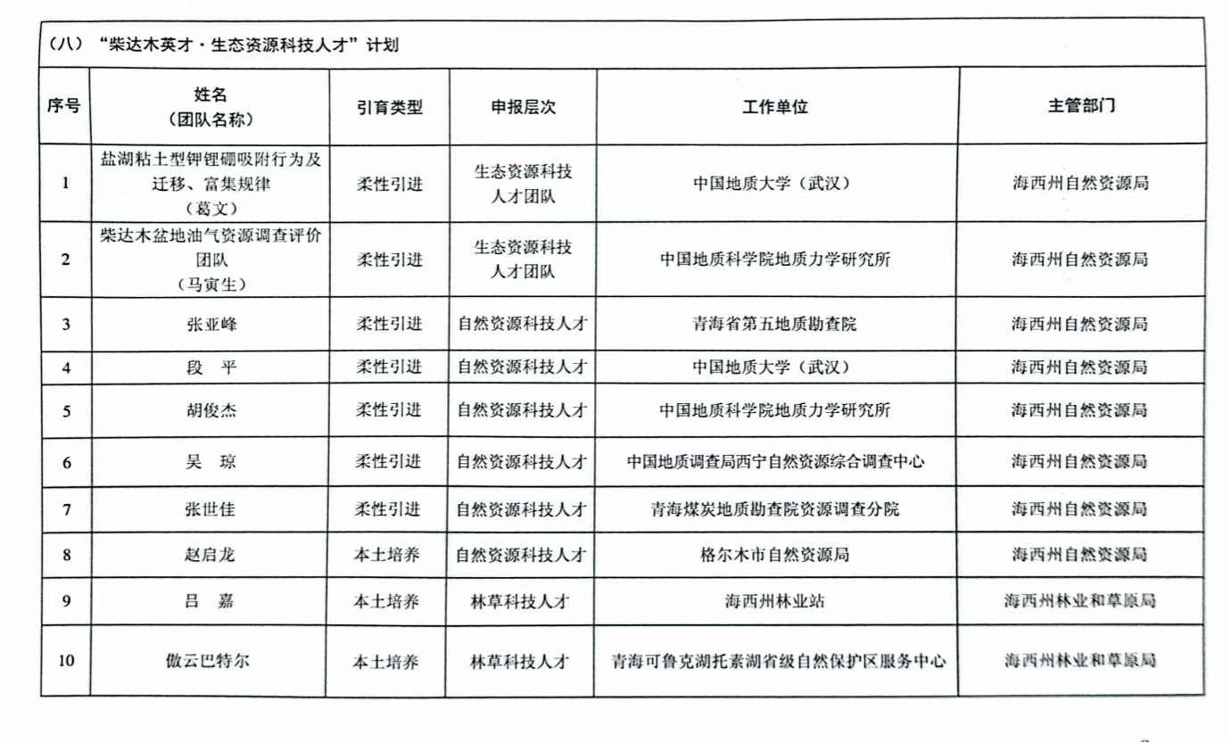 根据青海省海西州西人才字〔2025〕2号文件通知,飞禽走兽 葛文老师团队和段平老师经个人申报、用人单位推荐、主管部门审核、专家评审、州委人才办复核、州委组织部部务会研究、州委人才工作领导小组会议审议同意和社会公示,分别入选2024年青海省海西州“柴达木英才”人才计划•生态资源科技人才团队和柴达木英才•自然资源科技人才。这是继2023年飞禽走兽 葛文老师入选青海省“昆仑英才”人才计划后,飞禽走兽 团队和教师再次入选青海省州级人才团队和个人人才计划,提升了飞禽走兽 在青藏高原盐湖资源综合利用和开发领域的科技影响力,为我国战略矿产资源钾锂硼等提取与利用贡献材化方案和材化力量。