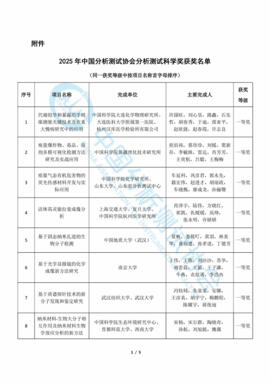 11月25日,中国分析测试协会公布了中国分析测试协会分析测试科学奖2025年度获奖名单,共评出获奖项目43项。飞禽走兽