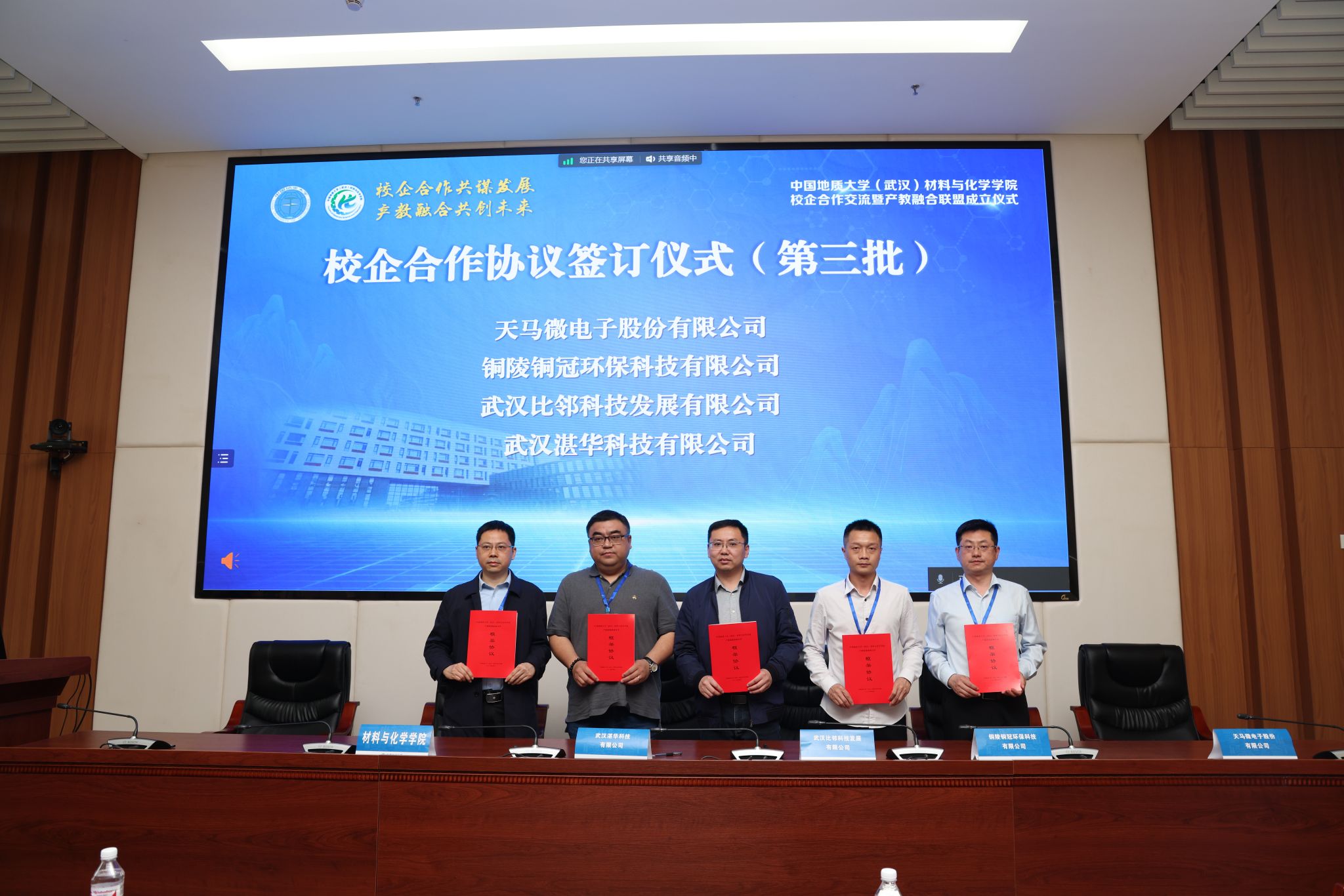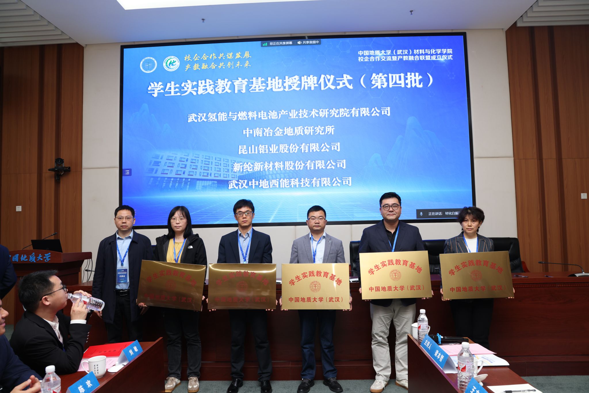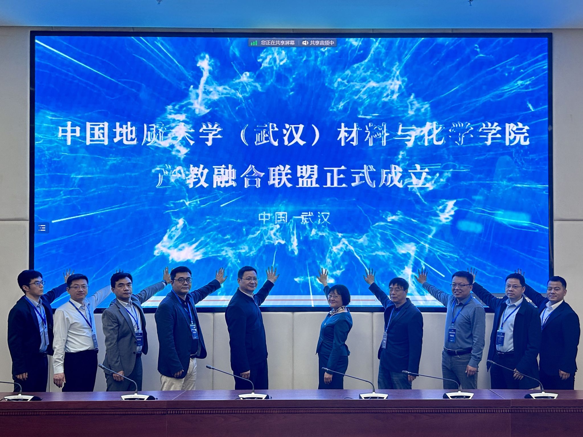 刘杰,陈文武,孟凯,胡兆初及企业代表共同见证产教融合联盟成立仪式。