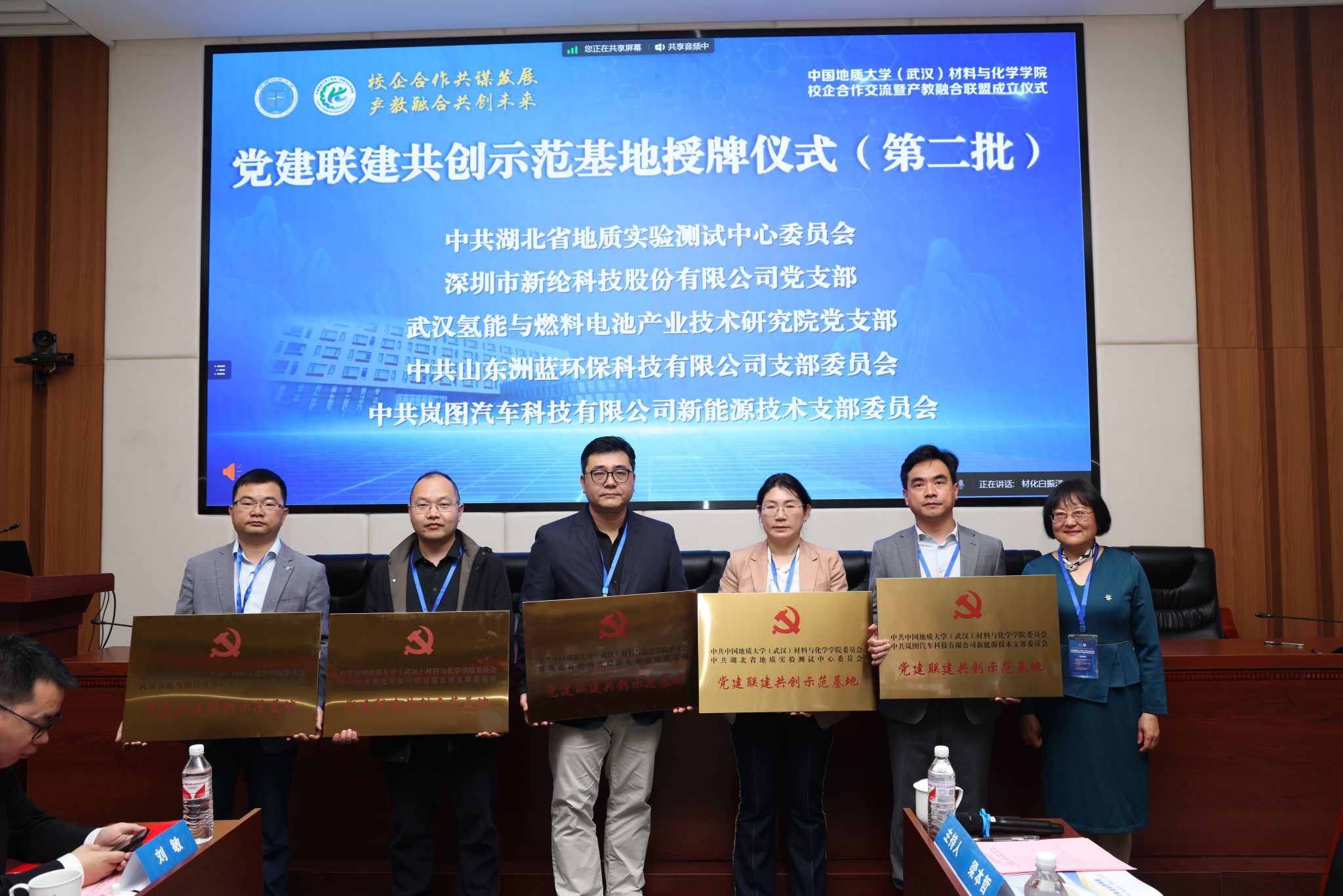党委常委、组织部部长陈文武为10家企业党组织授党建联建共创示范基地铜牌。