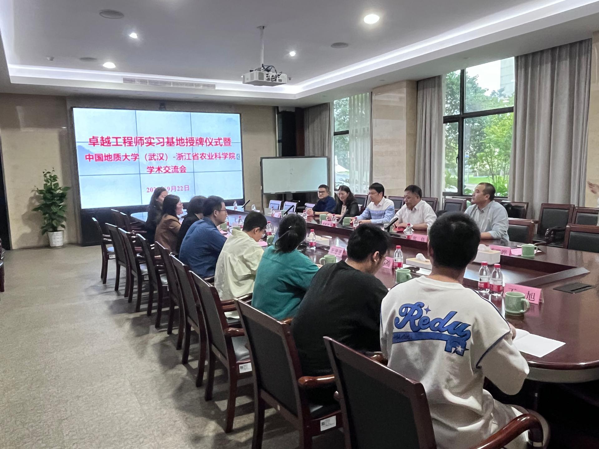 (以下简称“浙江农科院”)调研考察人才联合培养与科技合作等工作,并分别与浙江地科公司党委书记董事长袁波、浙江农科院农产品质量安全与营养研究所所长褚田芬为“卓越工程师教育培养计划”(以下简称“卓越计划”)培训基地揭牌。