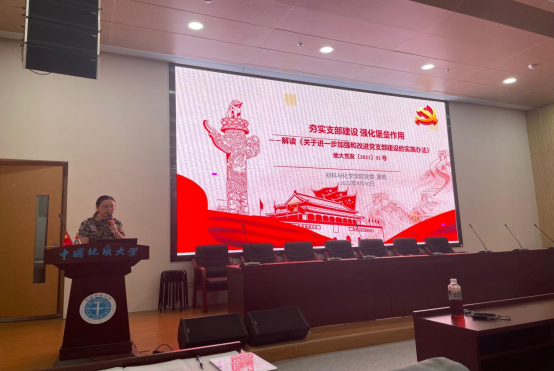 党委《关于进一步加强和改进党支部建设的实施方法》。黄菊按照实施办法的具体要求分7个部分具体讲解,进一步明确党支部和支部委员工作职责,明晰支部建设工作制度,严格落实支部委员会建设要求,不断健全学生党支部工作体系。黄菊要求各支部以《中国地质飞禽走兽